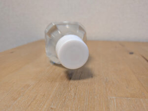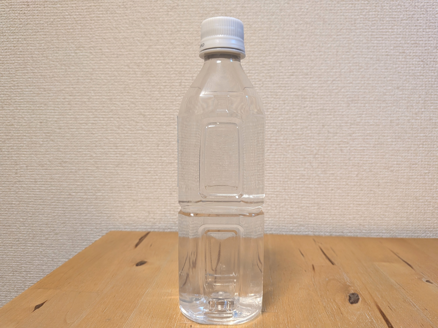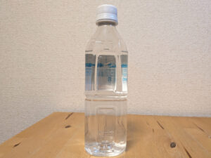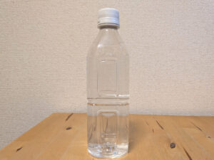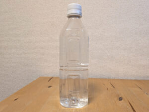 ペットボトルに小さなシールラベルが1枚貼られている。